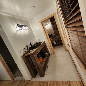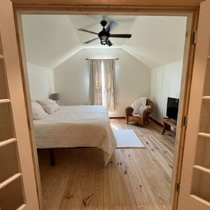 Get a detailed look at our spacious kitchen and living area, three full bathrooms, and second-floor sleeping area with two private king bedrooms and an open-sleeping area with three queens.